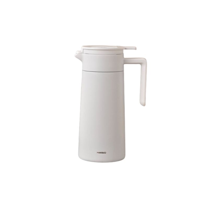 Hario's double-walled stainless steel pot maintains brewing temperature while staying cool to touch. Larger 800ml capacity perfect for sharing or multiple cups. Clean white finish suits any kitchen.